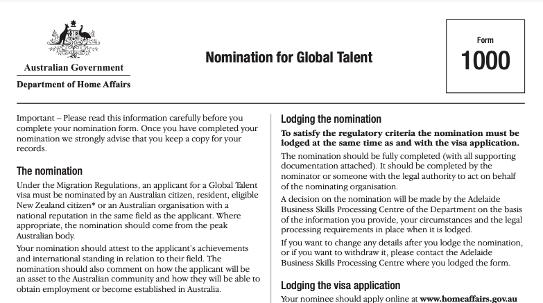 form1000 requires the applicant’s record of achievement to be attested to by a nominator who has a national reputation in relation to the area of achievement. A nominator must be: